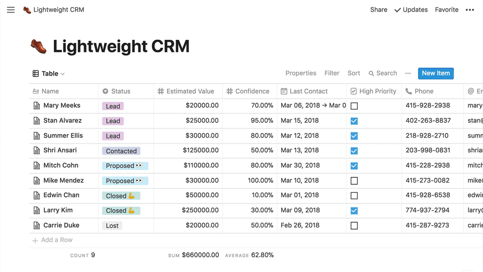 Notion還有一個厲害的功能就是建立資料庫,例如說你可以整理一大堆你平常喜歡去的咖啡廳,在表格中記錄下這些咖啡廳的屬性後,你可以直接用索引的方式找到你想要的咖啡廳,例如說可以用地區排列或是用價錢高低排列,相較之下evernote裡的表格就真的只是單純的表格,沒有資料分析的功能。