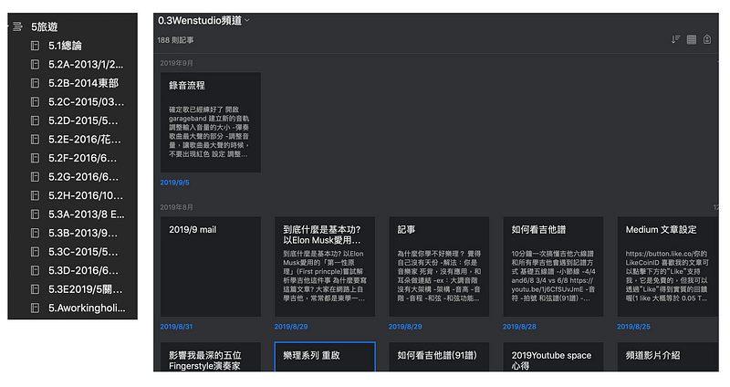 再來是如果一個記事本裡面的記事太多、太肥大的話,就算用卡片模式來檢視,你依然看不清整個記事本裡頭的全貌,所以很難去回顧過去到底有過哪些很棒的idea,也難以做整理,基本上只能用搜尋去尋找過去的東西……