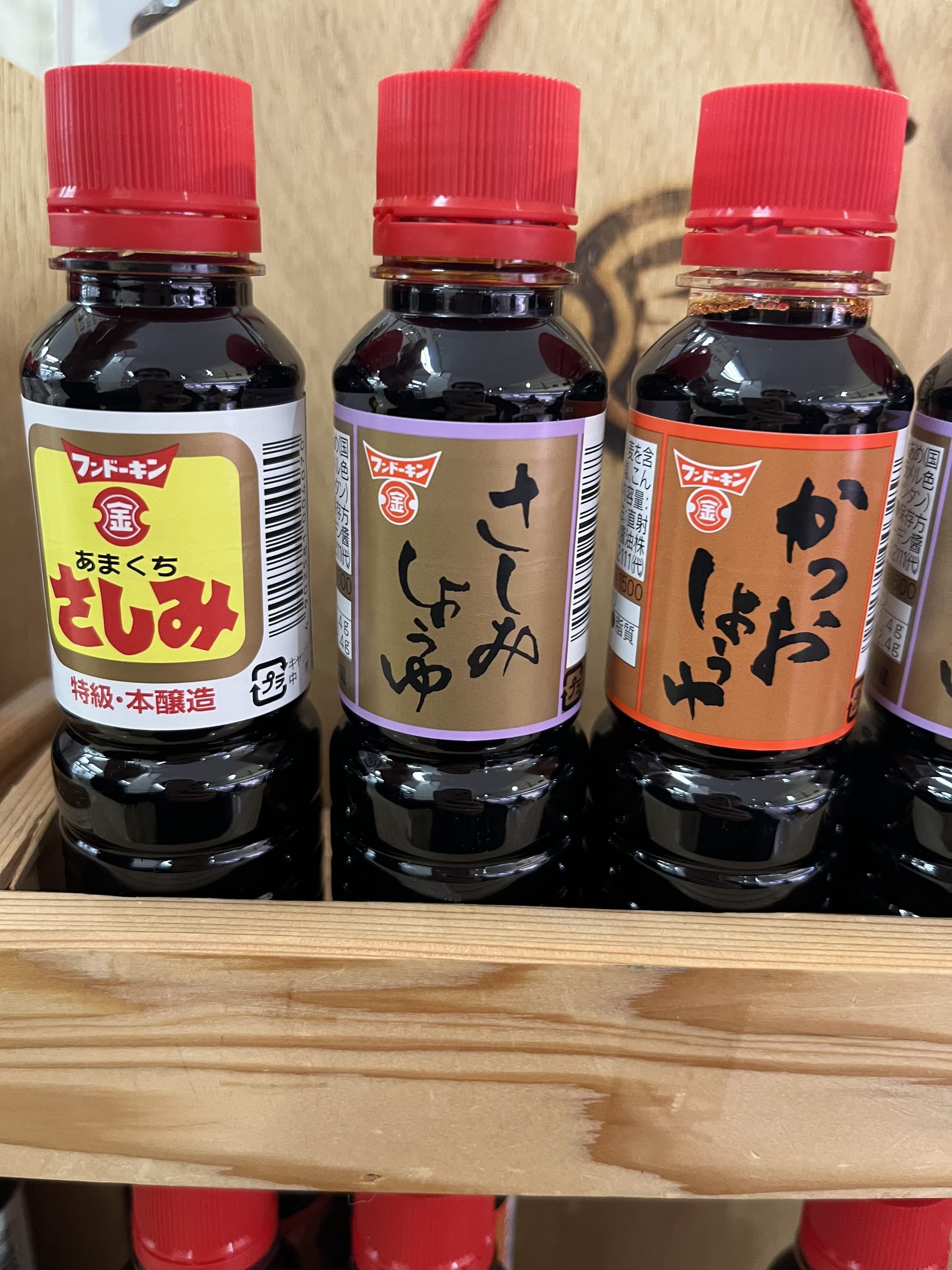 在台灣的超市醬油雖然也是很多,但不太會有這種為了沾生魚片的醬油,但是日本就有,直接就可以知道飲食習慣上的差異。