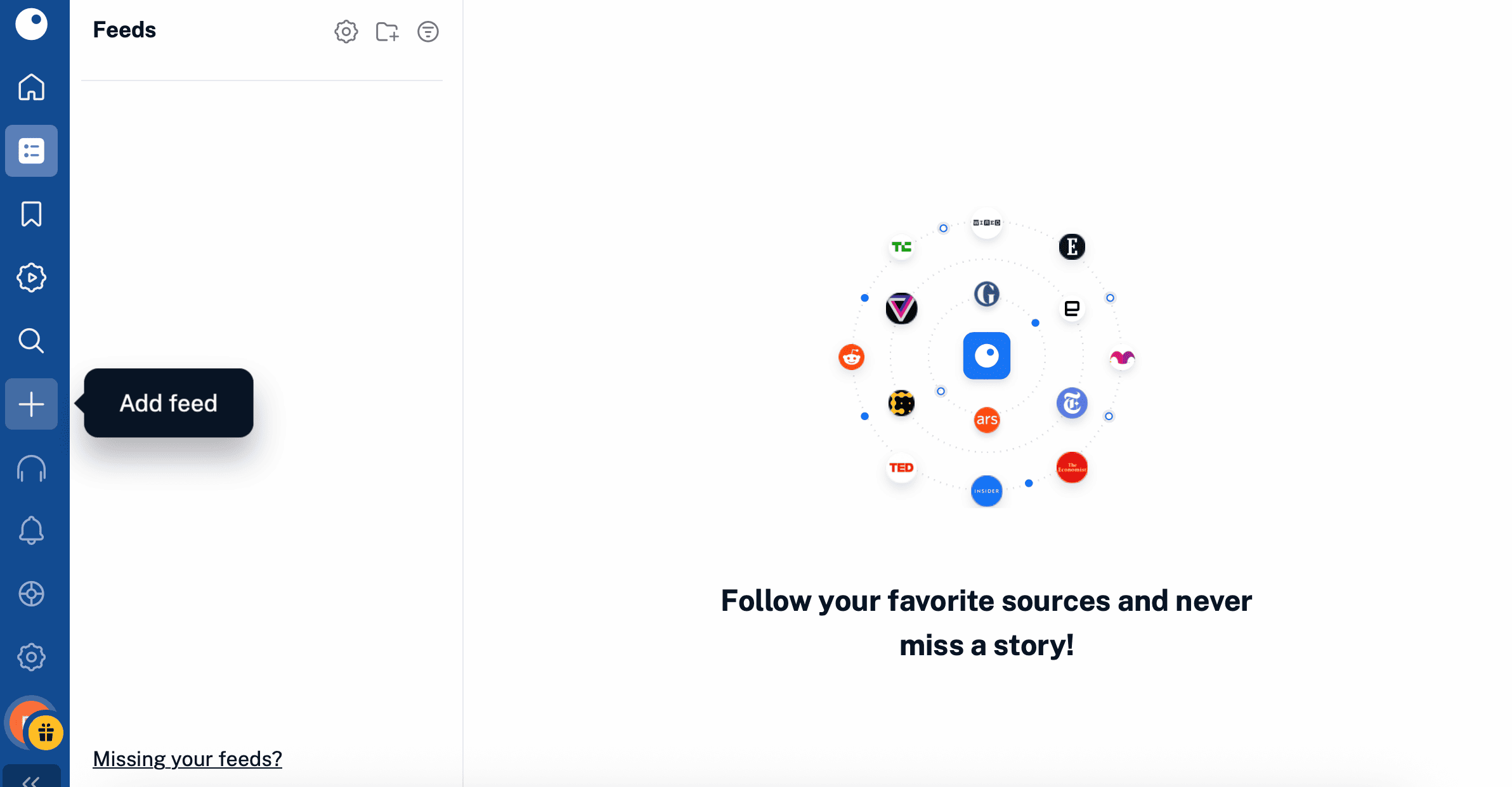 - 再來點選左側欄位的「+」(Add Feed),進到添加Feed的頁面