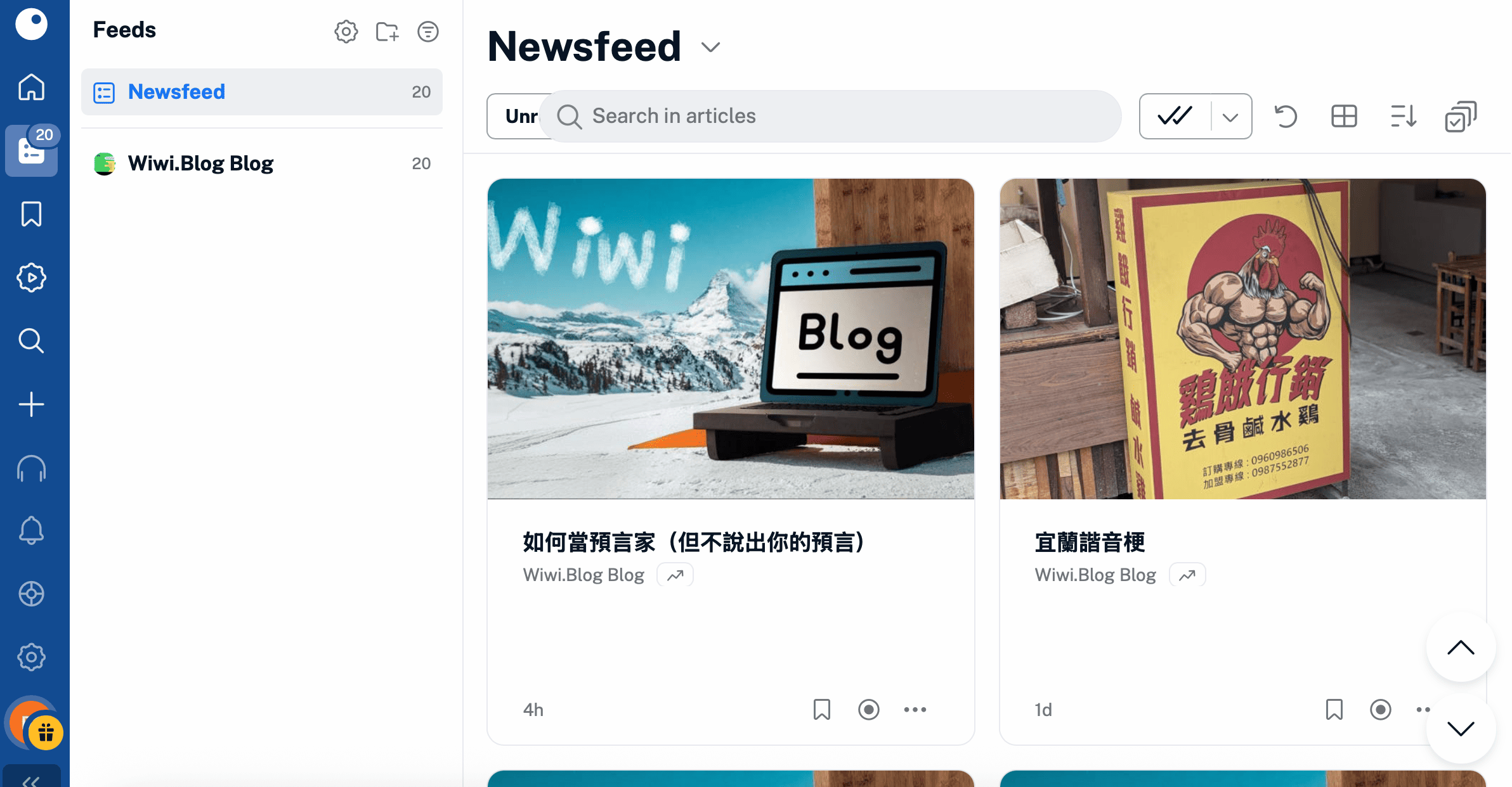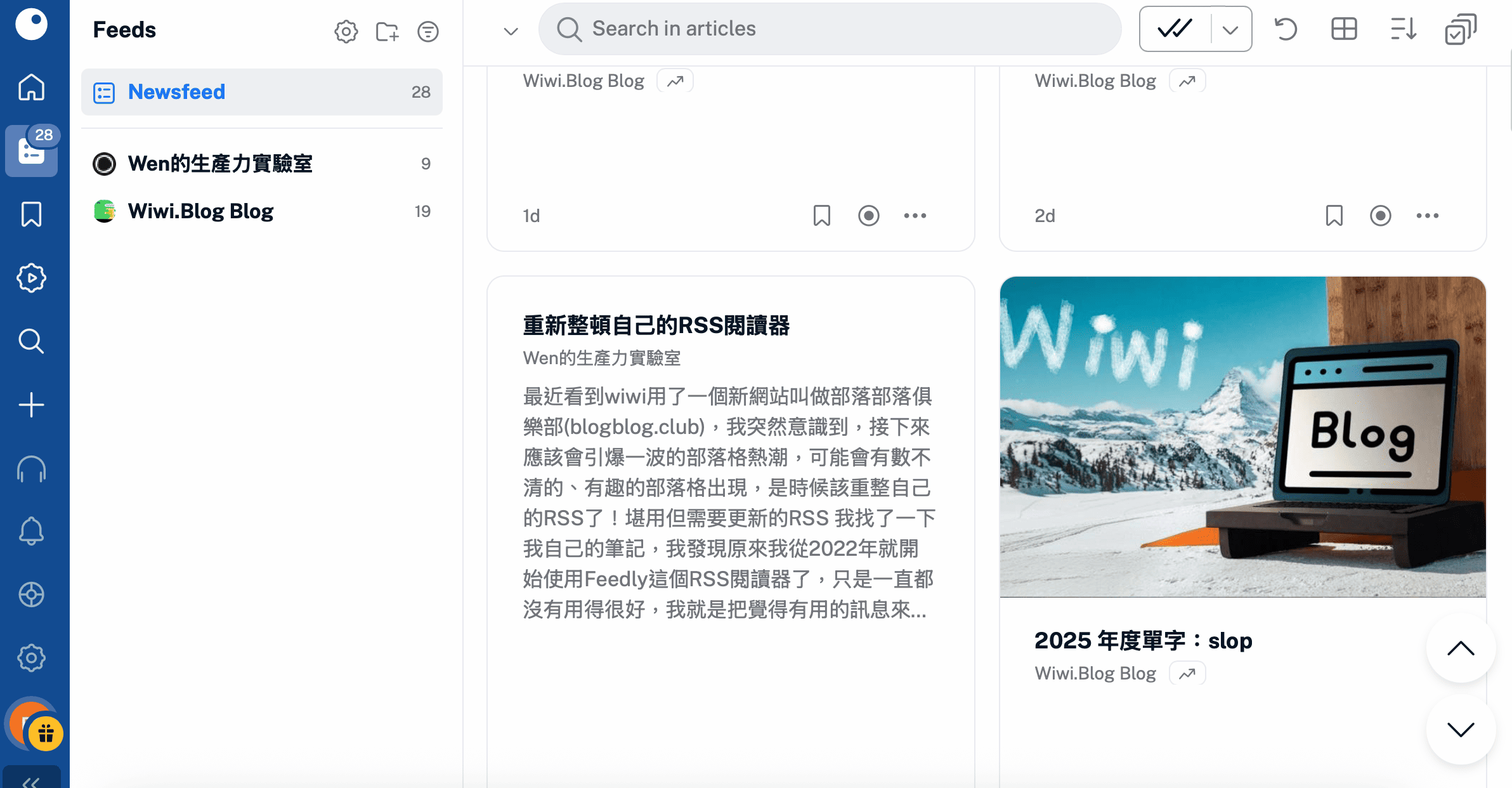 2022年我剛開始用RSS時,主要是想降低對社群媒體的依賴,但到了2025年末,我再回顧一下,發現現在真的是不用不行了,因為AI的原故,社群媒體劣化的速度實在是太快了,很快的,會用RSS跟不會用RSS的人,將會拉出相當大的差距。
